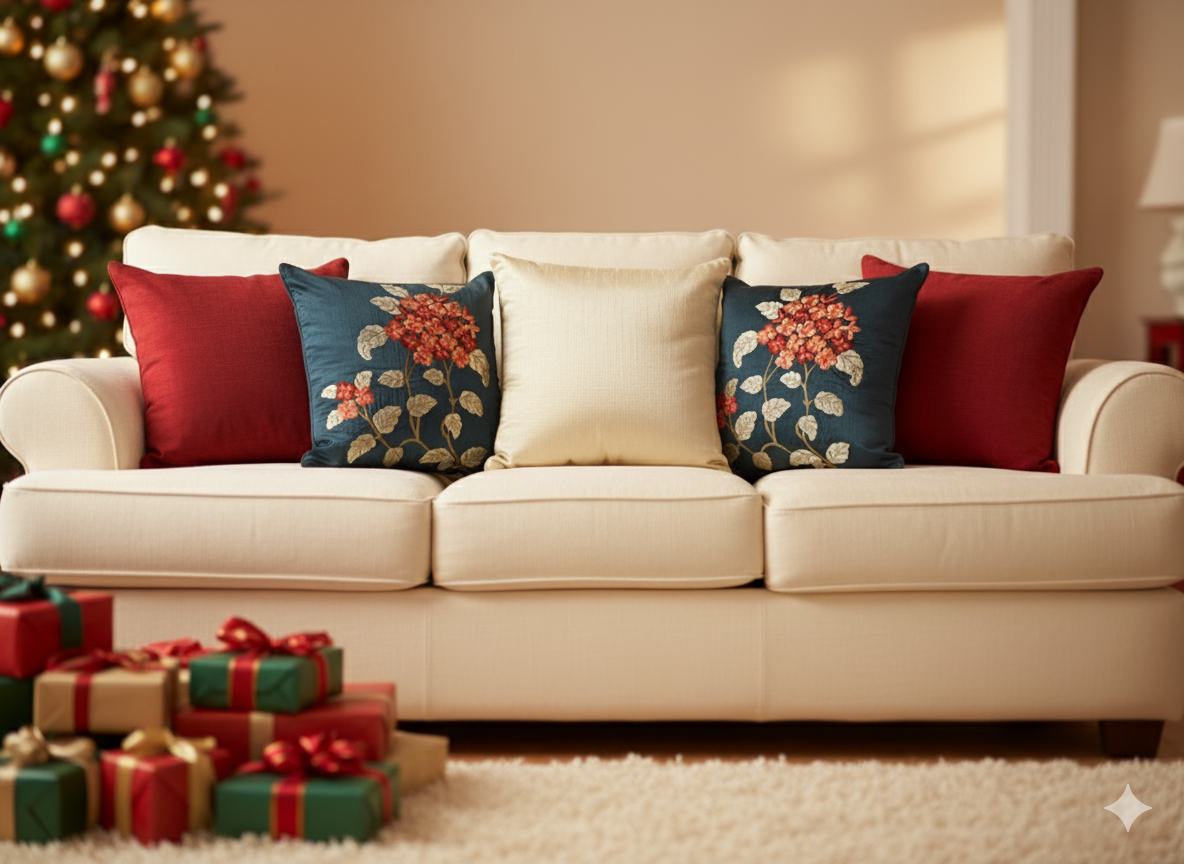 Woven in lustrous Dupioni Silk, this teal and red cushion cover brings quiet drama to modern living through the subtle beauty of embroidered florals. Designed to bring depth and softness to your space, it carries the natural sheen and tonal variations that make silk endlessly captivating.