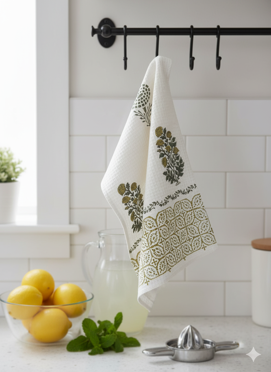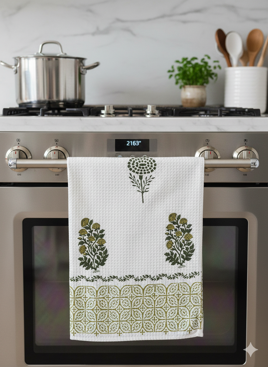 Crafted in soft, absorbent cotton, each towel is inspired by flowers in bloom. Designed to brighten daily rituals with pattern, color, and the easy beauty of handmade craft.