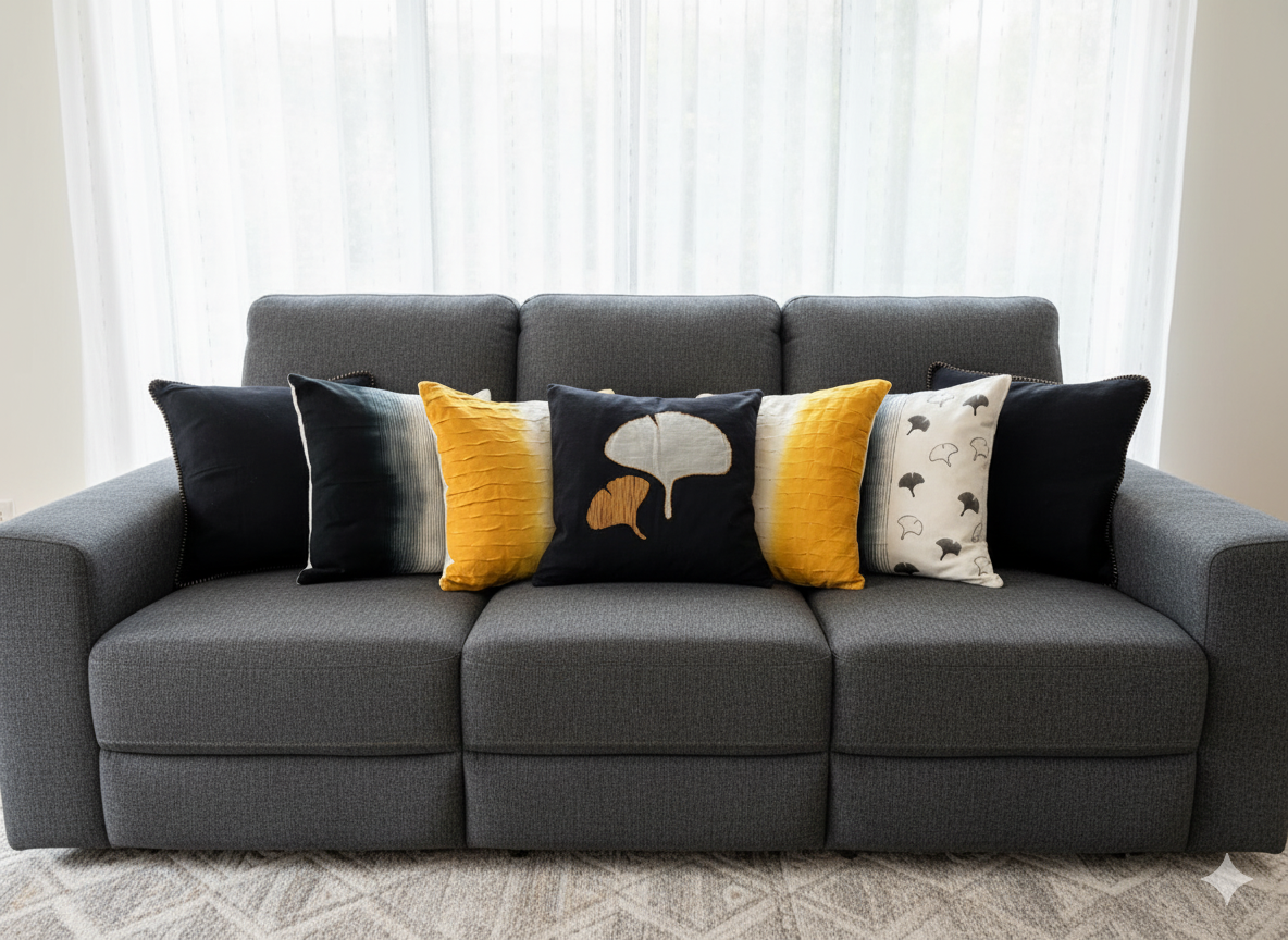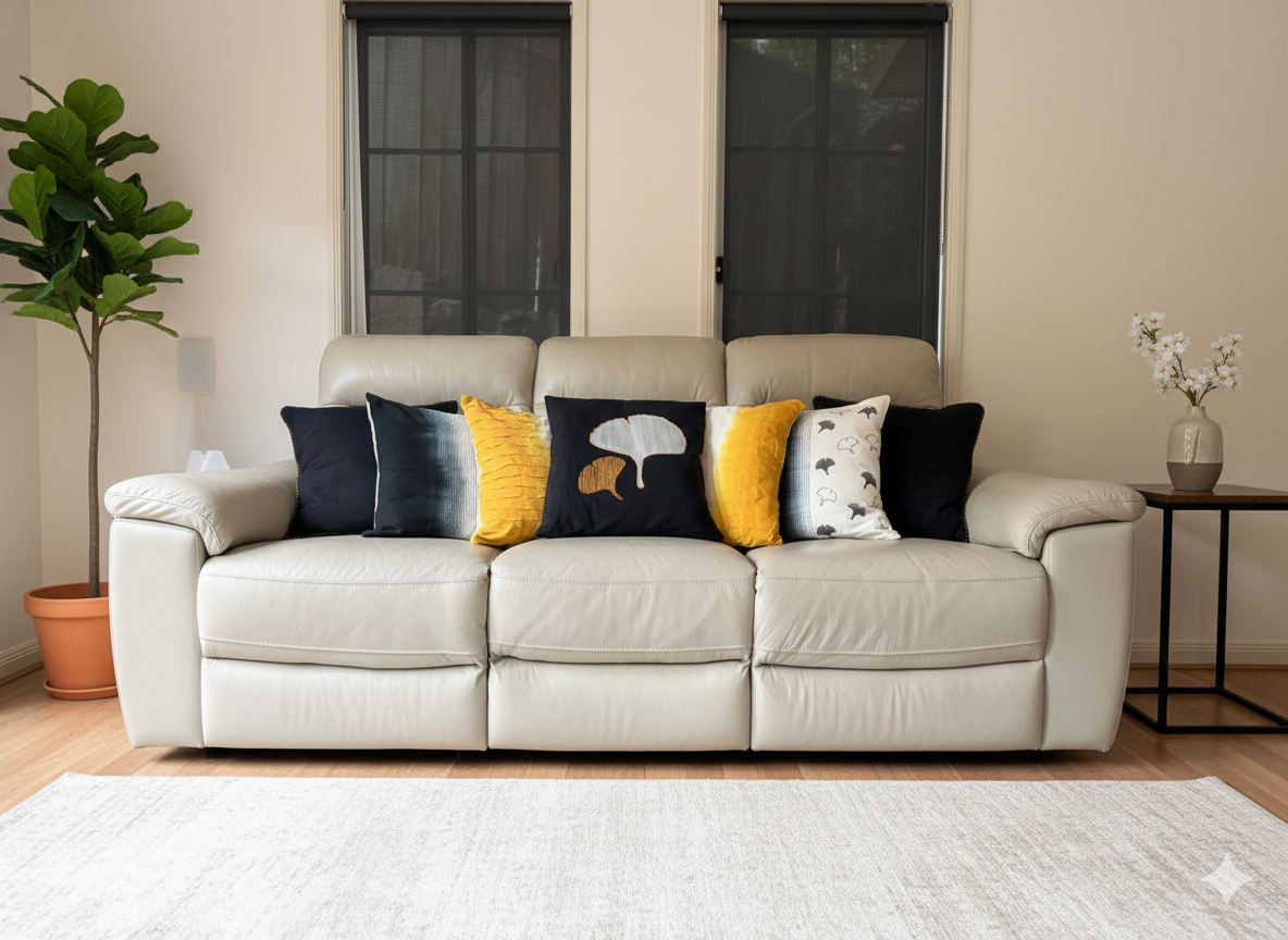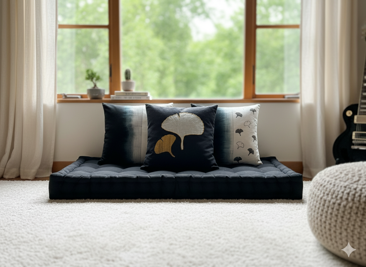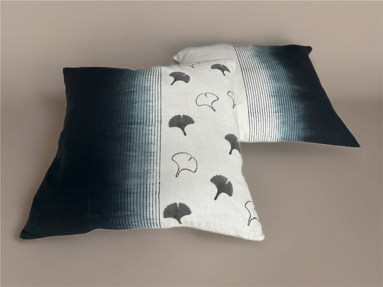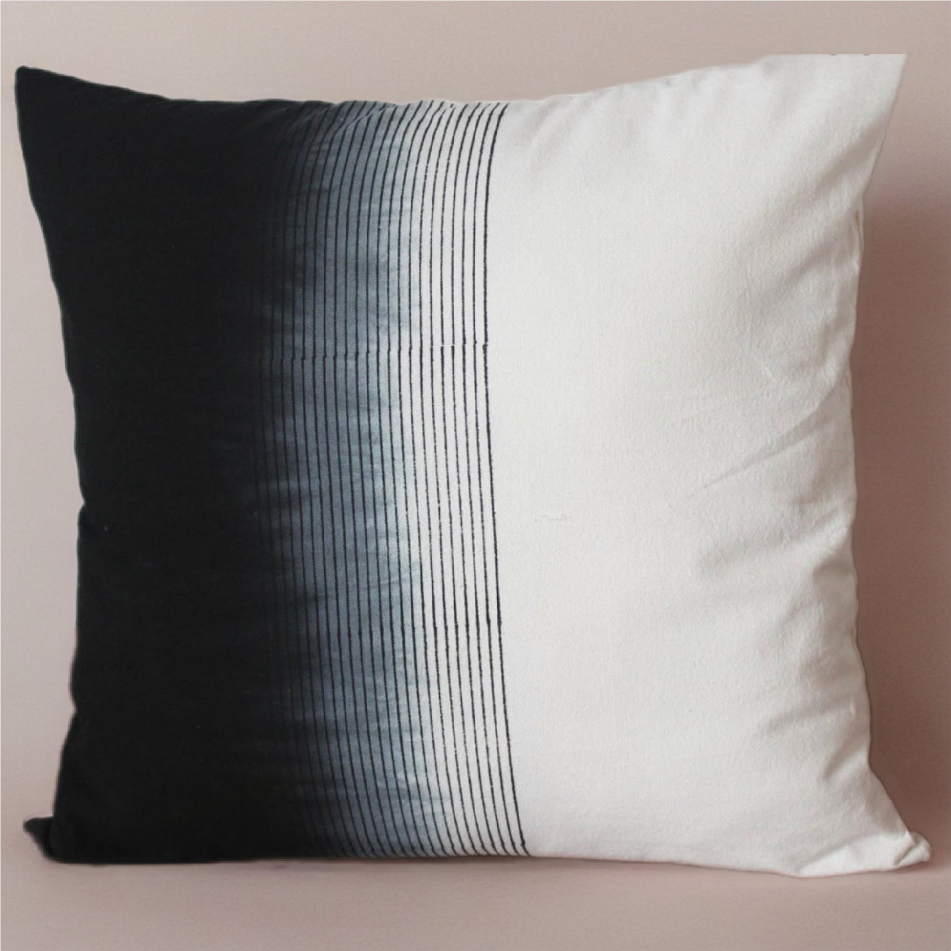 In bold black and white, this cotton cushion cover layers block-printed blooms with ombré gradients. Designed to make a graphic statement, it transforms any space with contrast, clarity, and contemporary edge.