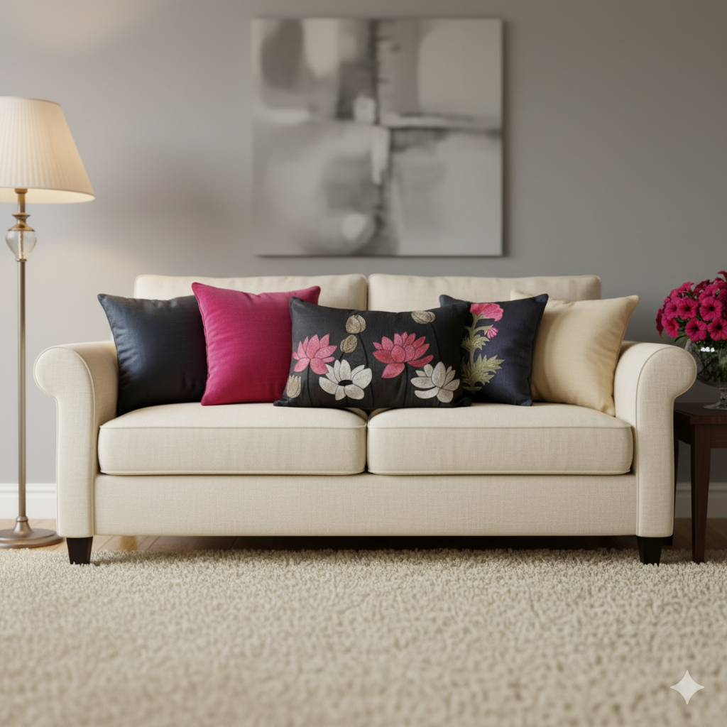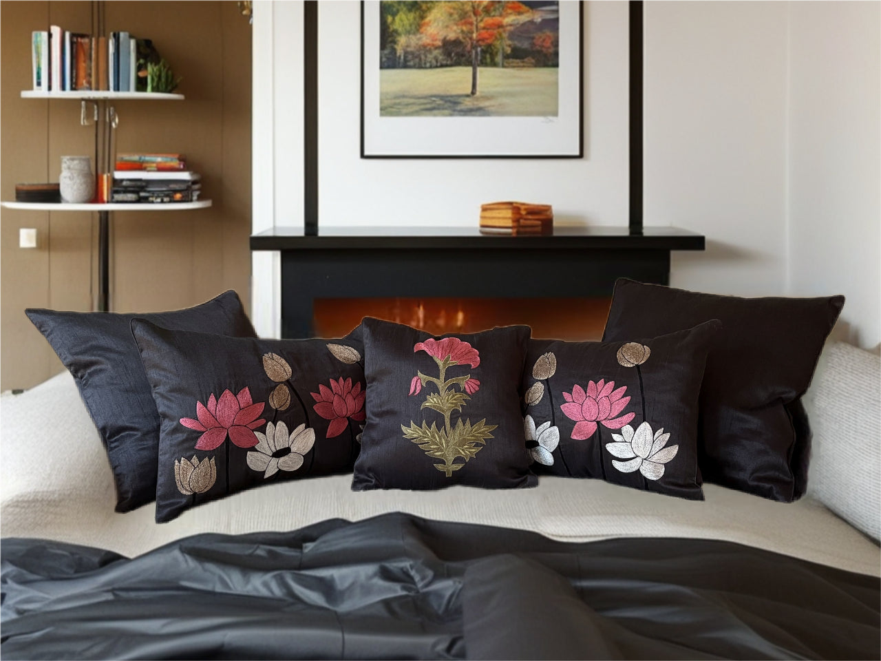 Woven in lustrous Dupioni Silk, this grey cushion cover brings quiet drama and subtle beauty to modern living. Designed to bring depth and softness to your space, it carries the natural sheen and tonal variations that make silk endlessly captivating.